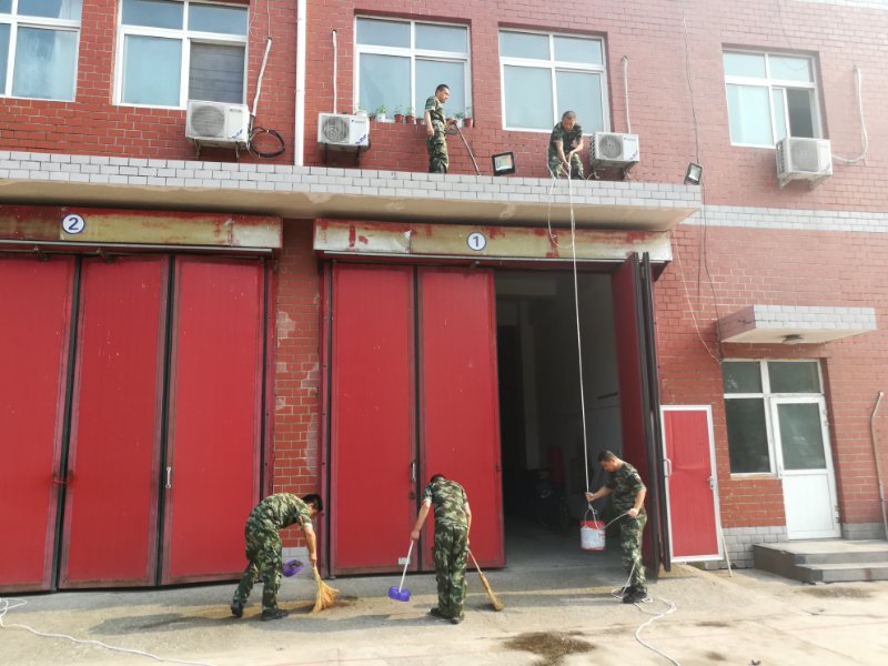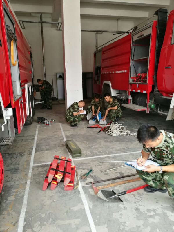 項目進駐后,首先對駐地衛生進行了整理整頓,從樓道到走廊,從墻壁到玻璃,從車輛到器材均煥然一新,其次立足于指導培訓相結合,熟悉掌握為基礎,對院區重點防火部位、特殊車輛操作、道路和水源分布、隨車裝備器材登記造冊等工作進行了詳細的摸底排查,以百分百的狀態積極投身院區消防工作。