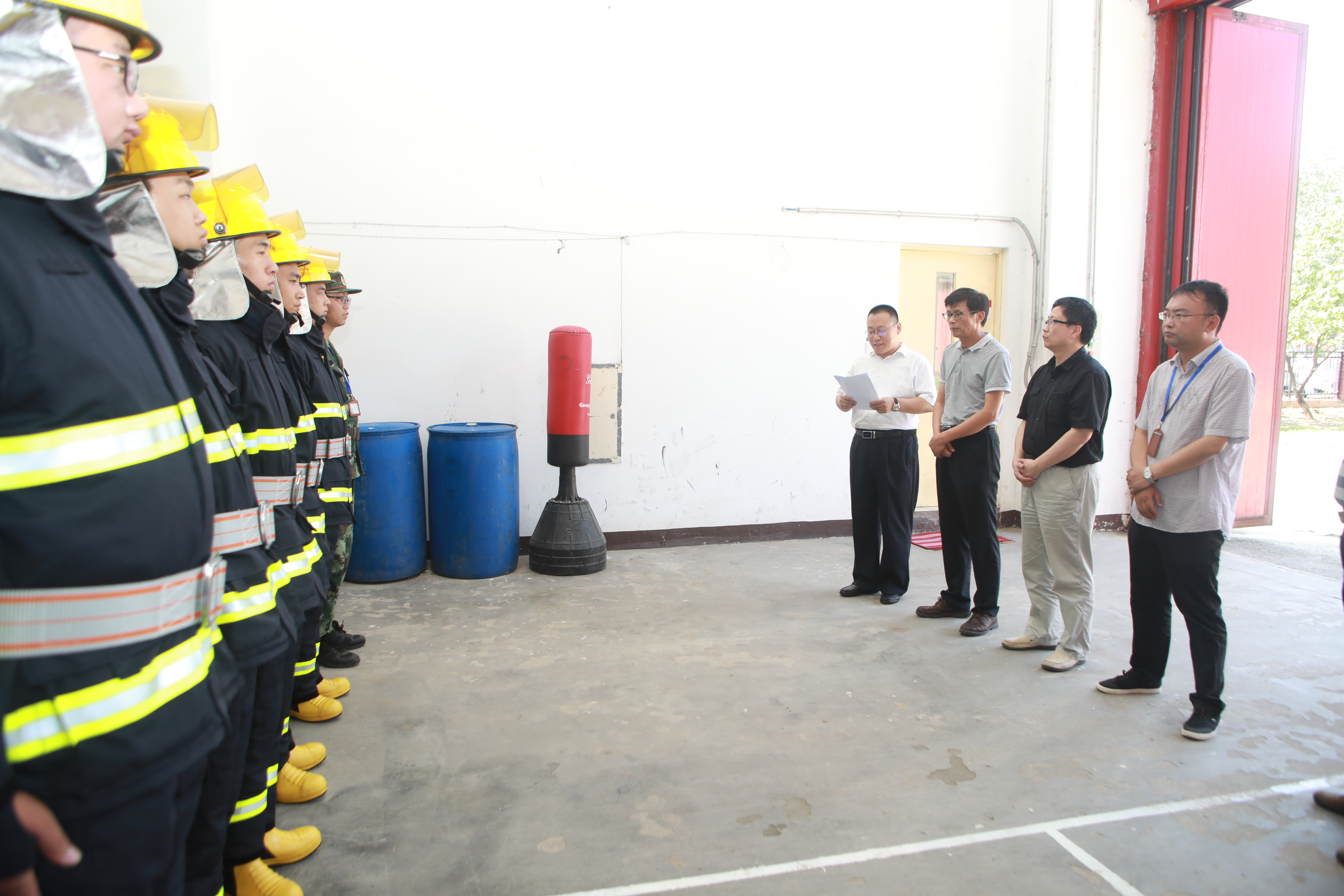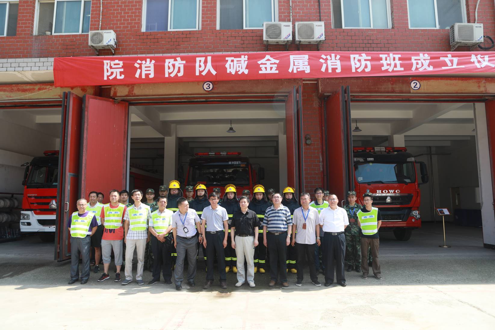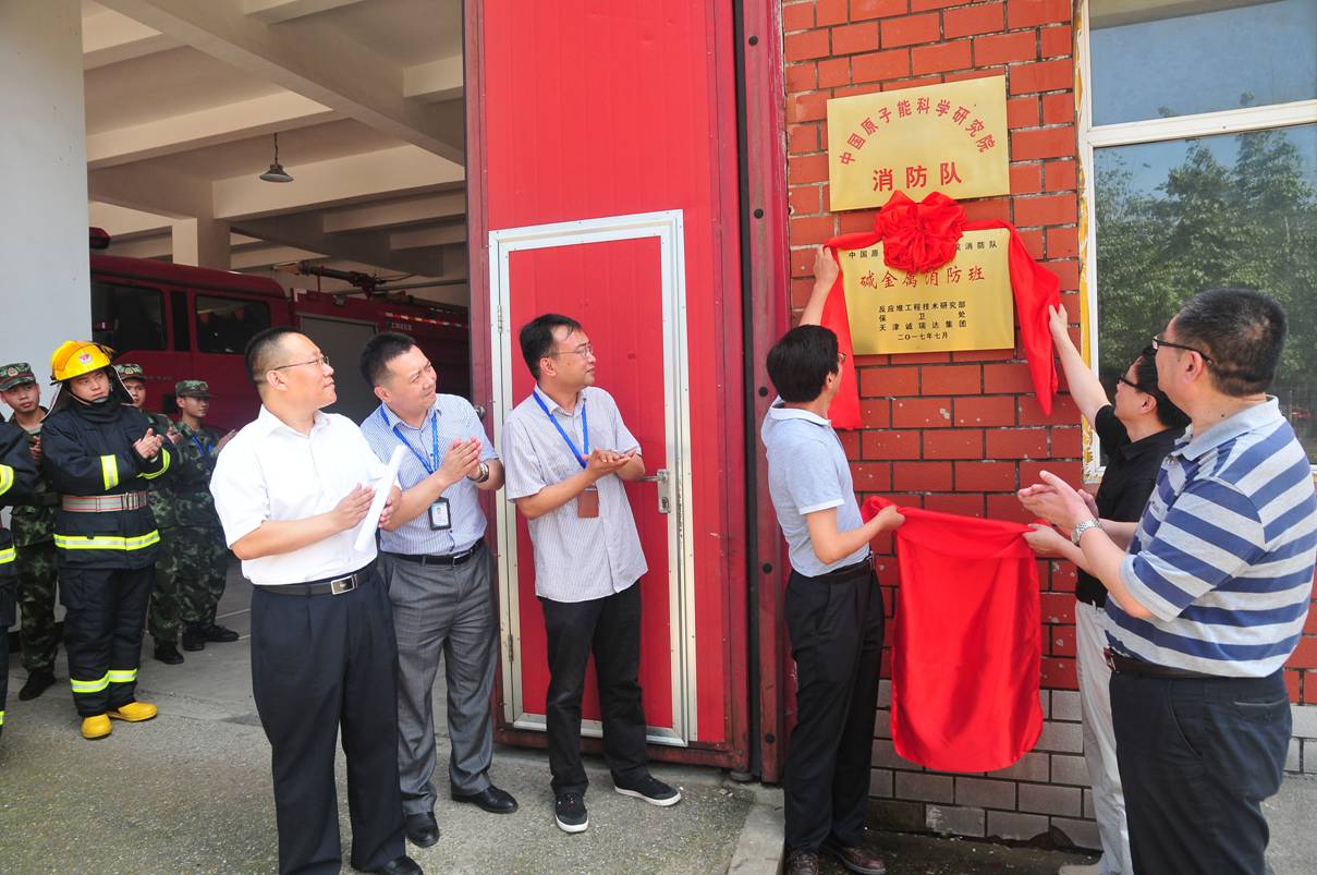 項目進駐后不久,集團公司副總經理李守學受邀參加甲方組織的消防隊成立及“堿金屬消防班”揭牌儀式,儀式上中國原子能科學研究院領導和公司李總分別進行講話。